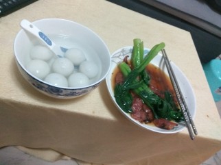 晚饭打算煮碗汤圆,炒一个腊肠菜心。